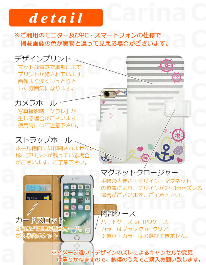 ケースの詳細 ケースのタイプ : 手帳型 ( ベルトあり ) 手帳の生地の素材 : 合皮レザー ( ポリウレタン ) ハードケースの素材 : ポリカボネート ハードケースのカラー : クリア もしくは ブラック ケースの機能と特徴 : カメラホール / マグネットクロージャー / カードスロット ハードケースで背面や角を守る事に併せて、スマホの前面を手帳カバーで覆います。